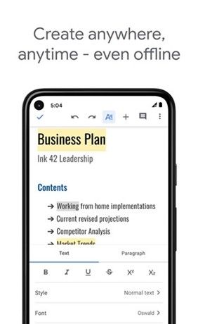 5.创建新文档或编辑在Google Docs或其他设备的网络版本上创建的文档;