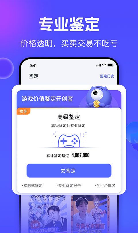 1、【专业鉴定价格透明】氪金兽拥有游戏价值鉴定师专职团队。通过分析市场变化,借助大数据算法,对游戏价值进行专业鉴定,杜绝价格“黑洞”。同时,鉴定师在哔哩哔哩、Tik Tok、Aauto faster等各大媒体平台进行直播,普及游戏鉴定和安全知识,与用户直接互动,赢得游戏玩家的信任和喜爱。