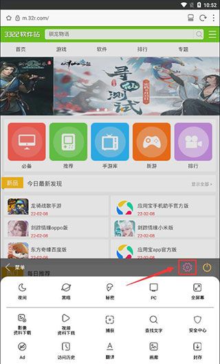 2、然后在菜单窗口中,点击右上角的的【齿轮】设置按钮。