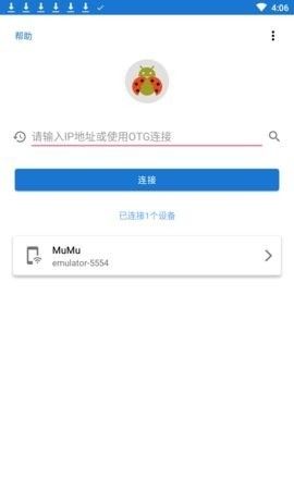 4、此时,我们在新的设备上打开甲壳虫ADB助手,输入被控机的IP地址和端口,就可以连接到手机设备了。