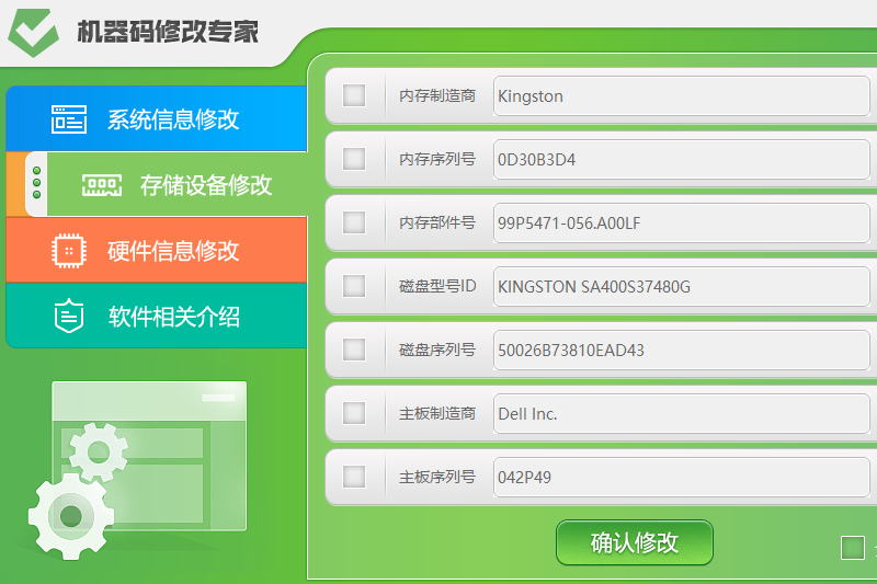 3、支持修改系统安装日期、内存条信息、硬盘序列号。