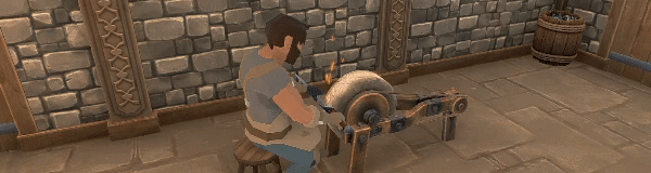 游戏采用精细的中世纪美术风格:工坊内部设备(熔炉、铁砧、砂轮)均配有动态生产动画;商品陈列展示细腻,如武器光泽、珠宝镶嵌效果等。外部场景则呈现小镇巷道、矿场营地等写实环境,纵向建筑扩展(如地窖、顶楼)增强空间层次感。界面支持多语言(含简体中文),UI布局清晰,兼顾生产数据与大陆势力地图,强化沉浸式经营体验。