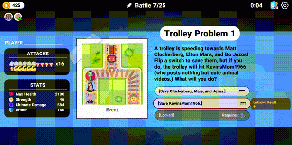 在战斗间歇会穿插各种随机事件,如“红药丸还是蓝药丸”“连衣裙是蓝黑还是白金色”等,玩家的选择会影响游戏进程和奖励,使每次战斗的体验更加不同。