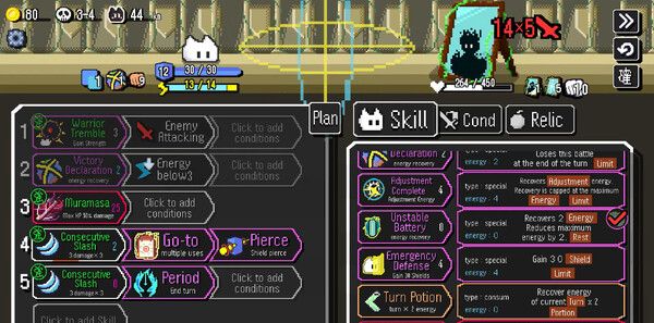 游戏的核心玩法围绕自动战斗与策略编程展开。玩家需组建一支由不同职业角色构成的队伍,并通过预设技能、行动条件和遗物搭配,打造独特的自动化战斗流程。在每场战斗中,角色会根据玩家设定的逻辑自主行动,例如优先攻击低血量敌人或特定条件下释放大招,而玩家则扮演“幕后指挥官”,专注于战前策略布局。游戏采用程序生成的关卡设计,每次冒险的地图、敌人配置和事件均随机生成,结合永久死亡机制(角色死亡后需重开新局),大幅提升重复可玩性。此外,玩家需管理船员资源和舰船升级系统,优化能源分配与装备搭配,以应对逐渐增强的挑战。