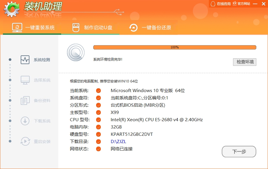 2、等待软件检测电脑配置信息,完成后点击 “下一步”。