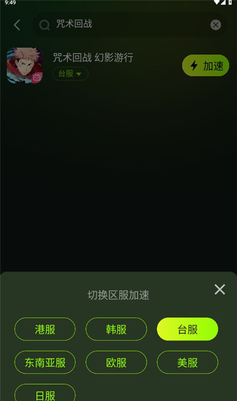 5、同时针对于不同服务器玩家也可以选择不同的节点进行加速。
