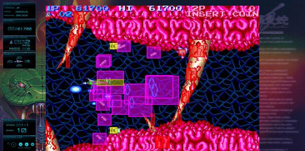 继承系列标志性的武器升级系统,通过收集能量胶囊强化主炮、护盾与速度,搭配4种Option子机实现火力覆盖。新作新增“武器组合技”,例如同时装备激光与导弹触发连锁爆炸,策略深度全面升级。