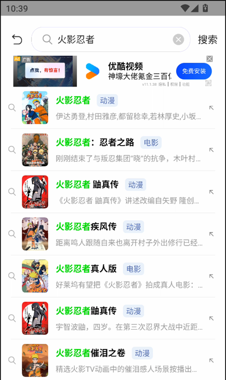 2、输入自己想要看的动漫,比如说:火影忍者。