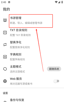 2、在页面找到并点击书源管理。