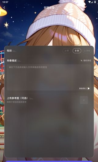 3、接着选择要创建的角色性别,并进行肖像描述,还支持提供参考图;