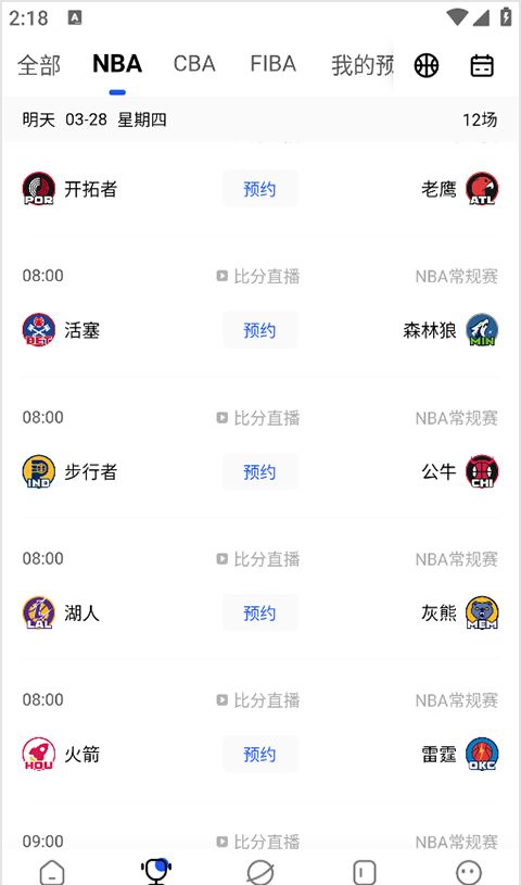 4、nba赛事主要提供季前赛、nba常规赛、季后赛等赛事的信息聚合。通过预约,可以实时推送比赛信息,避免错过精彩比赛。