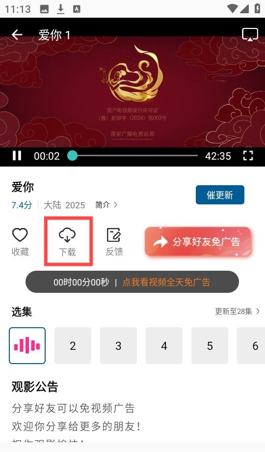 2、接着任意选择所需要的下载集数,如图所示。