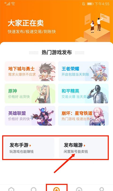1、打开7881游戏交易平台app,在首页下方导航栏点我要卖,选择发布手游或者端游账号信息,这里以为【发布端游】为例,