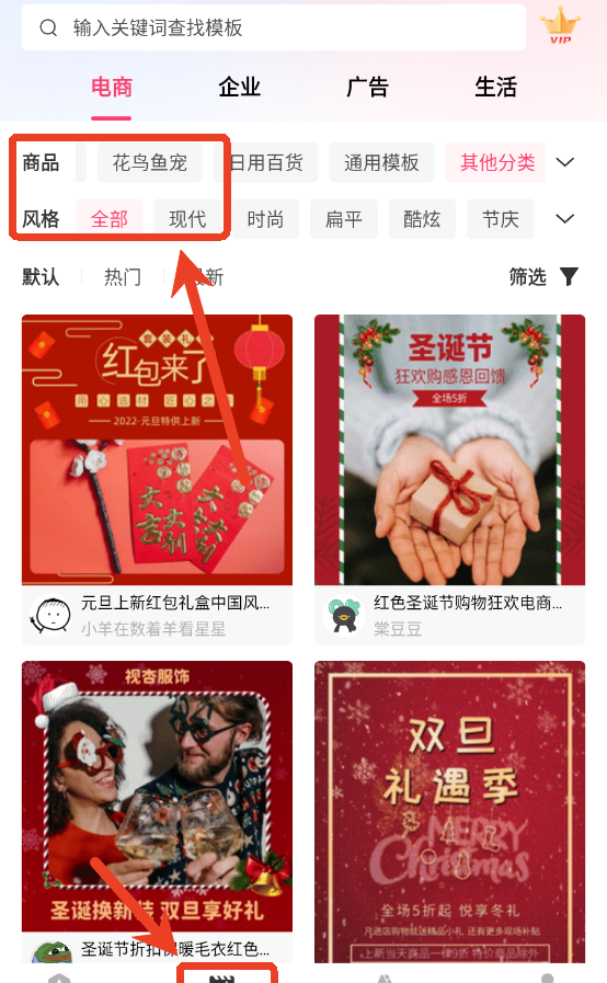 模力视频app内提供多种模板,用户可以通过主界面顶上的分类开始选择。