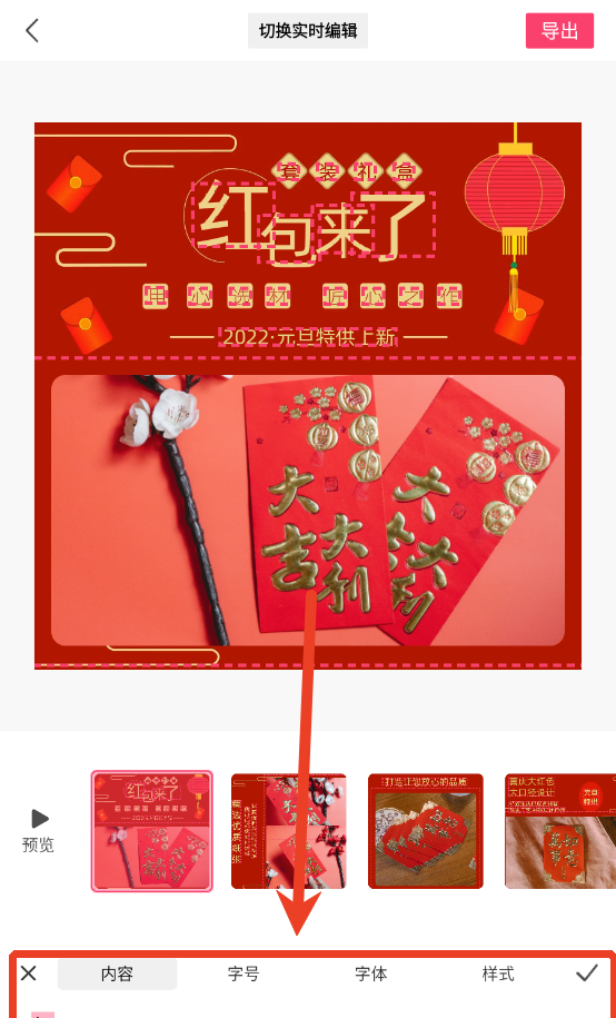 单击文字可以对文字进行编辑,更改内容、字号、字体和样式等。