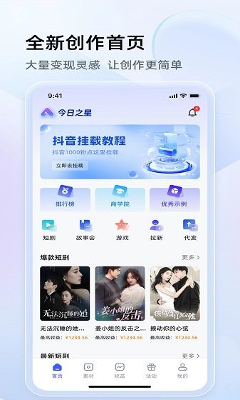 今日之星是一个专注于小说推文和短剧创作与变现的自媒体服务平台,为创作者提供从选题策划、智能剪辑到多平台分发的全链路服务。助力优质内容精准触达百万用户,让创作价值转化为真实收益。在这里拥有大量爆款的短剧视频资源,内置故事合集、游戏资源以及活动内容丰富,在此大家可以寻找到很多不错短剧视频素材,帮助用户更好进行短剧视频创作。制作海量优质的短剧视频,从而获取更多不错的收益,享受更多优质变现福利,大量优质秘籍和攻略都不会错过。
