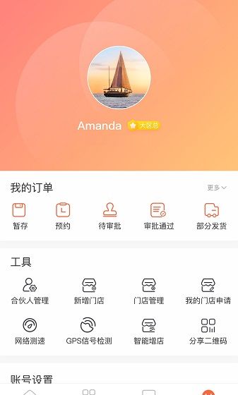 5、在个人中心可详情查看我的订单,还能进行门店以及合伙人管理等操作。