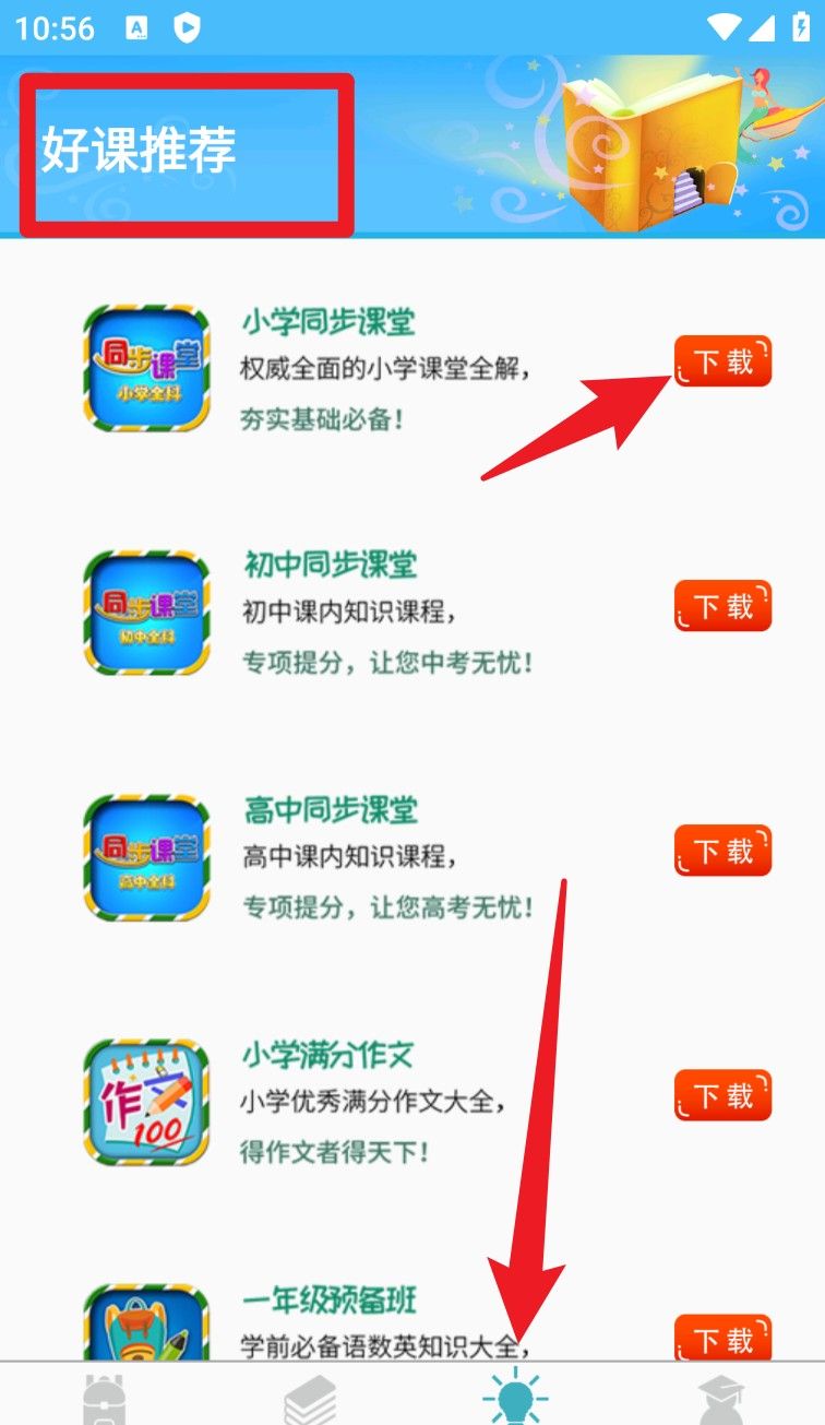 4、前往“好课”页可以下载配套学习课程,例如同步课堂、作文等额外辅导资源。