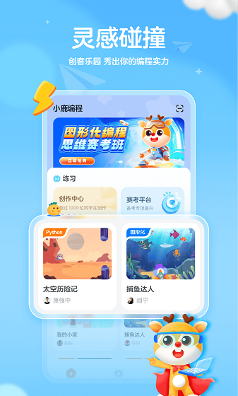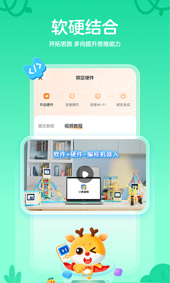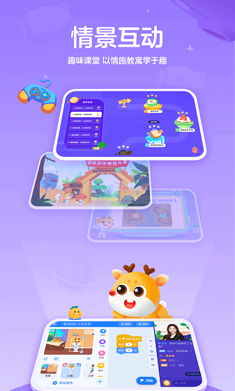 游戏介绍小鹿编程是一款帮助儿童编程初学者的教育学习软件,它将提供多个年龄段的编程学习资料,不拘束于复杂的代码理解,会以更直观的动画以及画面互动方式为孩子讲解编程的原理,更好的培养编程逻辑思维,以更科学、全面的知识结构和课程体系,培养少儿“四大思维”和“六大能力”,再通过软件编程配合硬件机器人让你更好的进行模拟学习。根据直播课领域的丰富经验,以及资深的教研团队,专注于培养集计算思维、工程思维、创新思维于一身的编程天才少年。