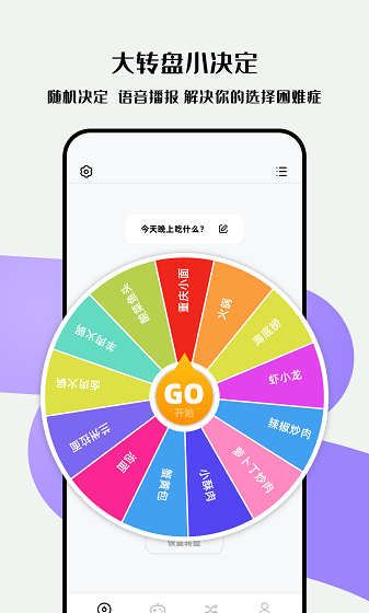 4、自定义指尖转盘的选项,通过转转盘来快速的做决定。