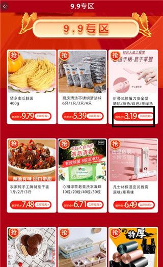2、今天9.9元专区,选择一款产品点击抢购