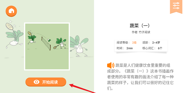 2、每本绘本都被科学地划分为多个学习阶段,宝宝将从基础的“阅读识字”环节开始逐步解锁。