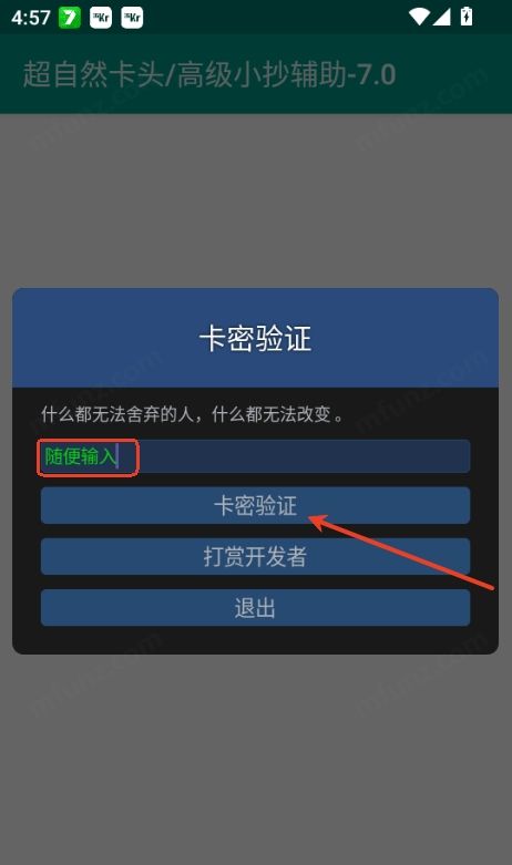 2、在请输入卡密输入框中,随便输入,再点击卡密验证。