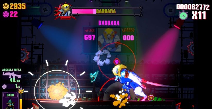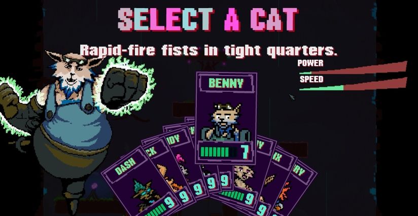 从九位凶猛的猫咪角色中任选其一,每位角色都拥有专属的基本属性、主武器与以及根据你的表现(也就是连击次数)充能的强力必杀技。游戏内共有五个不同区域供你闯荡,而你可以任意选择前四个区域的攻略顺序。从适合远程战斗的开阔竞技场,到必须与敌人近身肉搏的狭窄空间,每个区域中的特定类型敌人都会为你带来独特挑战。