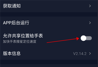 4、设置页面选择允许共享位置给手表,就能够记录手表运动数据了。