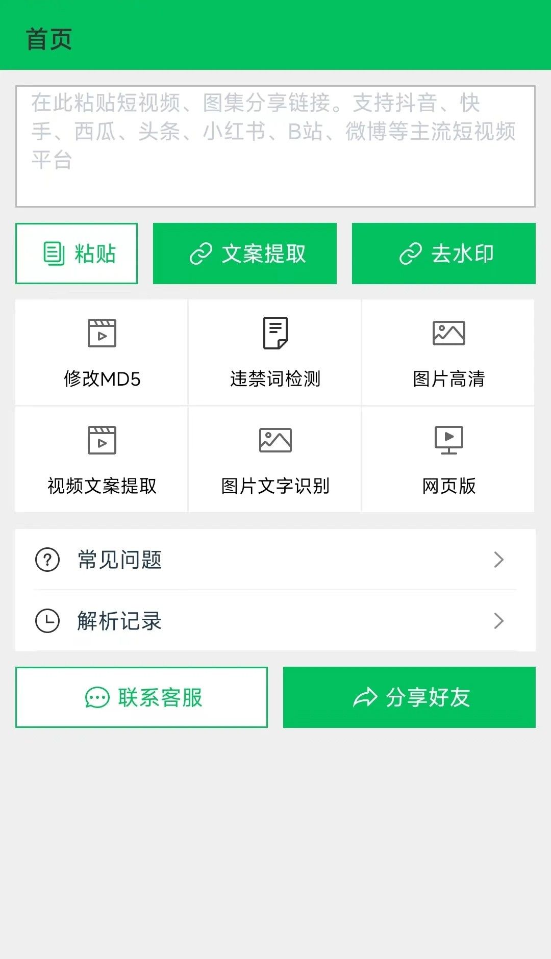 1、视频水印去除:支持主流短视频平台上的视频水印去除,允许一键导出无水印视频。
