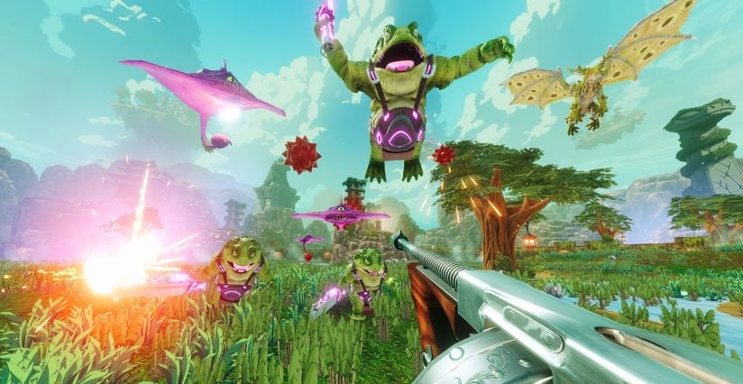 你扮演艾瑞克斯,一名无畏的狐狸战士,他与他的超音速乌龟坐骑以及背着喷气背包的小但睿智的熊布莱恩并肩作战。英雄三人组共同迎战整个恶魔战争机器。