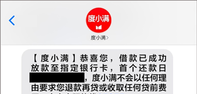 5、确认短信:通常借款2小时内,会收到度小满发给您的确认短信;个别情况贷款申请时间较长,如超过 24 小时未反馈,请您登陆度小满 APP 查看贷款进度。
