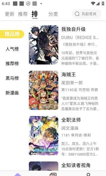2、界面简洁易用:UI设计清新直观,分类清晰。新用户可以在3秒内开始,轻松找到他们最喜欢的漫画。