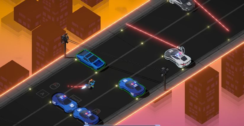 4、在心跳加速的摩托车追逐中测试你的反应能力。穿越车流,跳过障碍物,把坏蛋从他们的摩托车上打下来。