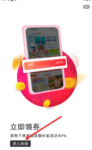 2、点击搜索商品,别忘记了首页的优惠券活动哦。