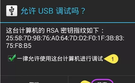 2、使用USB数据线连接安卓手机与电脑,如遇询问允许调试模式窗口,选择“一律允许使用这台计算机进行调试”后,点击“确定”。静待几秒,APP就安装成功了,不过也有某些品牌手机需要手动安装一下APP。