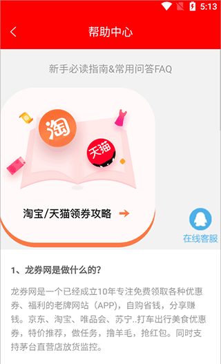 2、在app内找到帮助中心,查看淘宝、天猫领券攻略等内容,掌握领券方法。