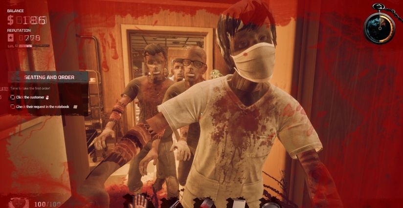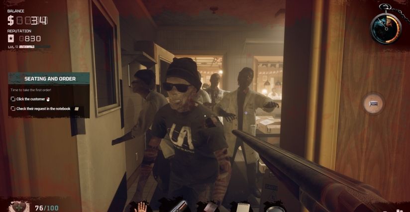 3、并非所有顾客都彬彬有礼。如果僵尸的饥饿计量条耗尽,它就会忘记礼貌,转而来吃你的大脑。拿起你可靠的霰弹枪,在一场疯狂的生死之战中保卫你的餐馆。