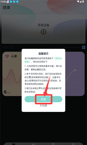 1、开启应用时确认隐私政策,点击同意按钮进入主页面。