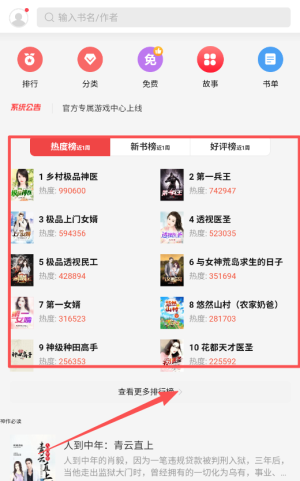 3、进入分类页面根据神医兵王保镖等标签筛选感兴趣的内容快速找到符合口味的书籍。