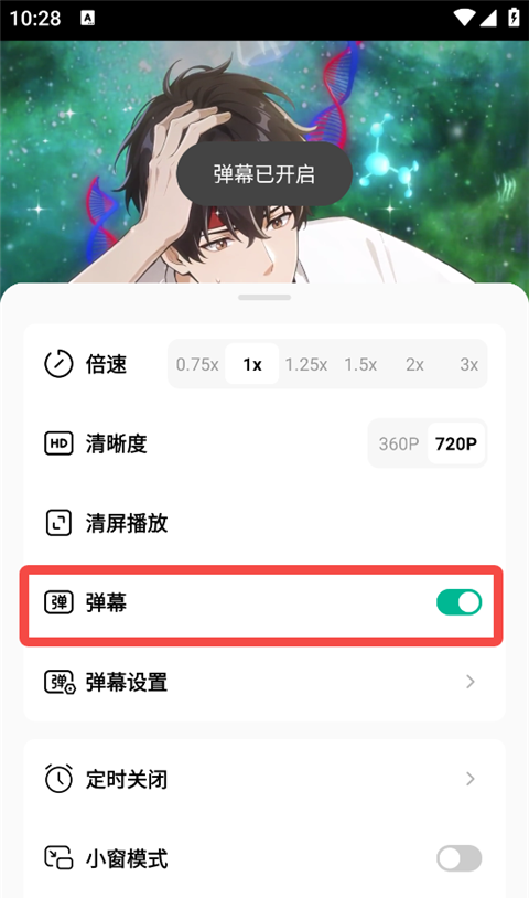 2、把弹幕开启。