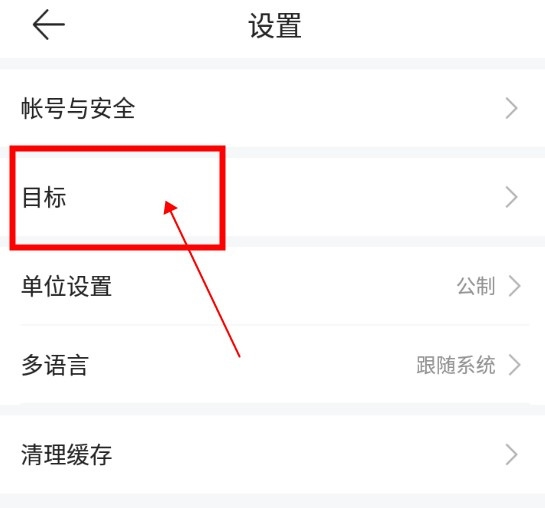 3、进入【设置】页面之后即可找到上方的【目标】一项。