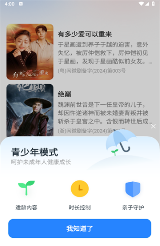 2、进入首页后,会弹出一个青少年模式。您可以选择适合自己的模式进入和使用。