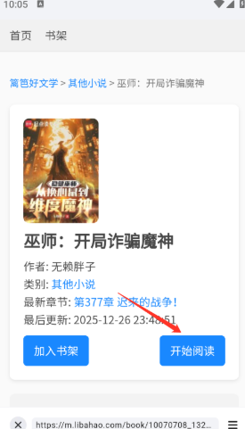 4、点开想看的小说进入到详情页,点击“开始阅读”。