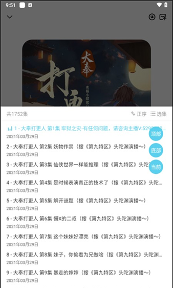 1、打开软件,我们能够进入到软件首页中去,在这里汇聚了非常丰富的有声小说作品,小编在这里选择了“大奉打更人”。