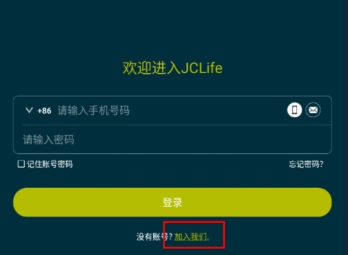 1、打开app,进入登录页面。如果您有账号,可以直接登录。如果你没有账户,点击[加入我们]按钮。