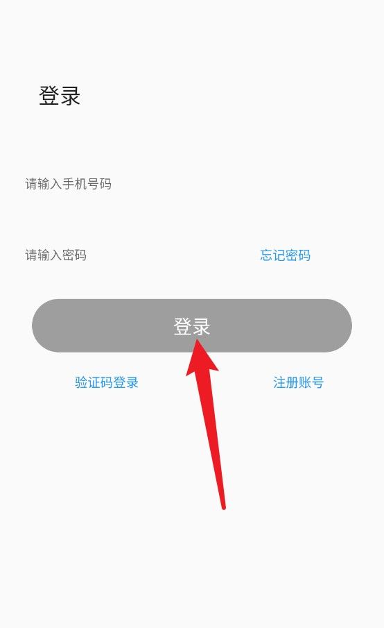 1、在登录页面输入您的手机号和密码,点击灰色登录按钮,即可完成帐号登录。