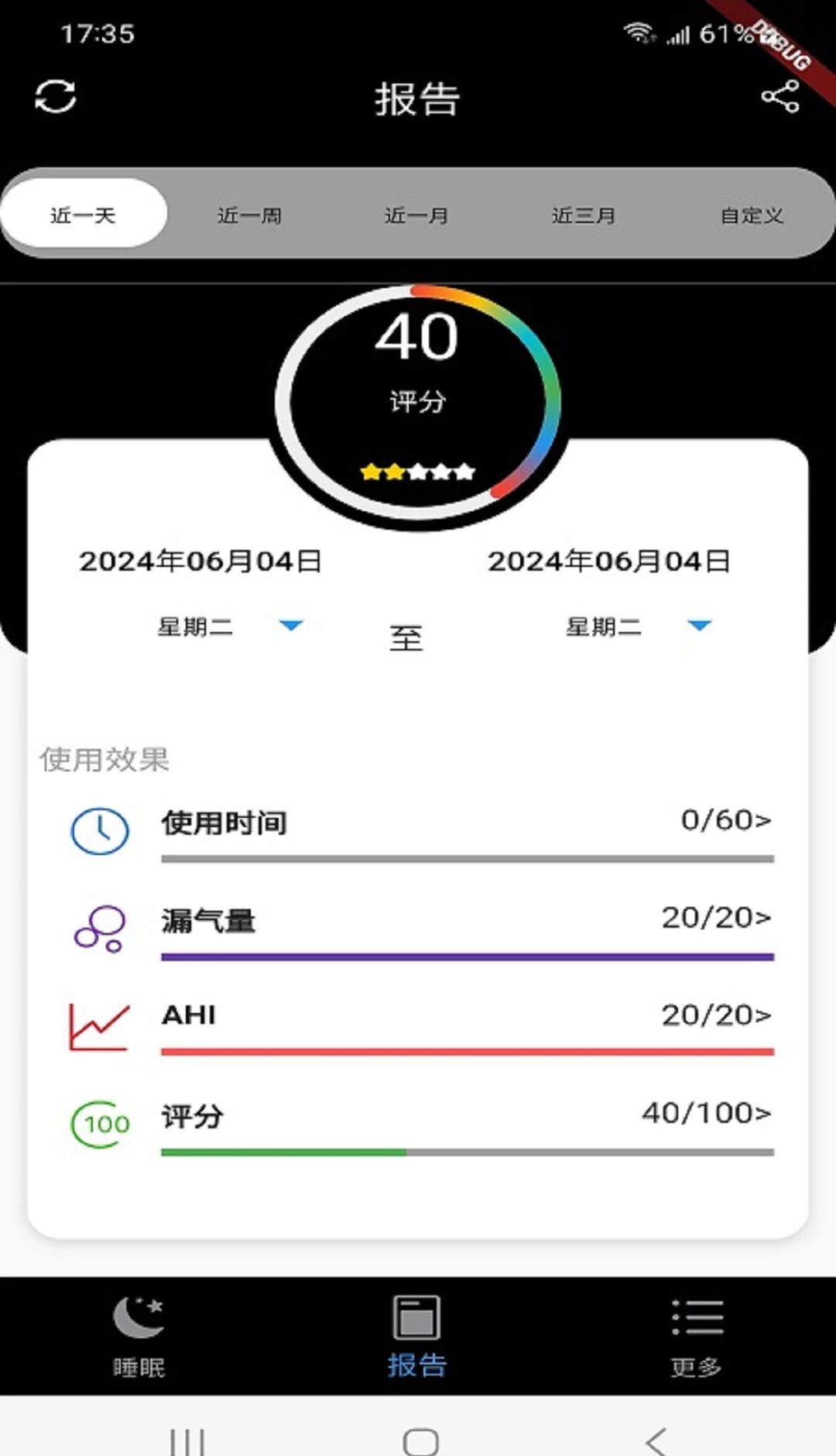 2、点击报告页面查看分数和各种睡眠数据。它还支持按时间段过滤和查看。