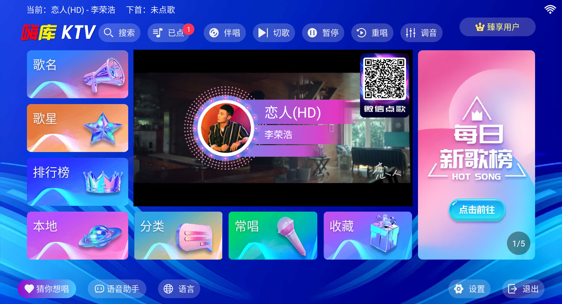 1、支持手机扫码便捷点歌,操作直观快速,海量歌曲任选,满足即时娱乐需求。
