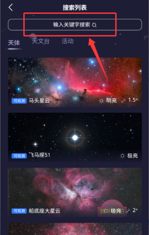 1、界面设计:界面简洁明了,以星空为主题,完美契合软件功能。用户可以通过简单的操作轻松浏览和了解各种天体的信息。